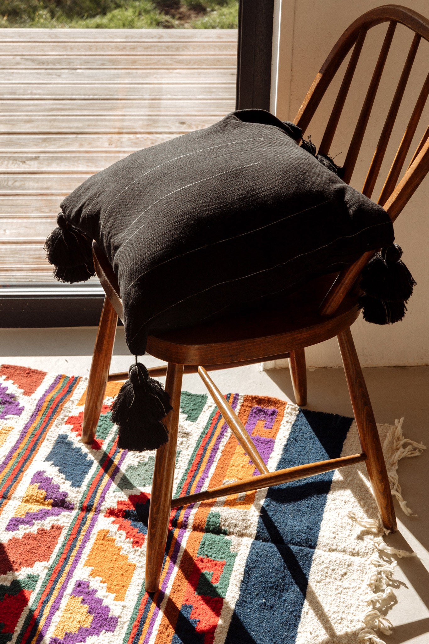 Ručně utkáno na pedálovém tkalcovském stavu v obci Momostenango v guatemalských horách tkalci z etnika K’iche.