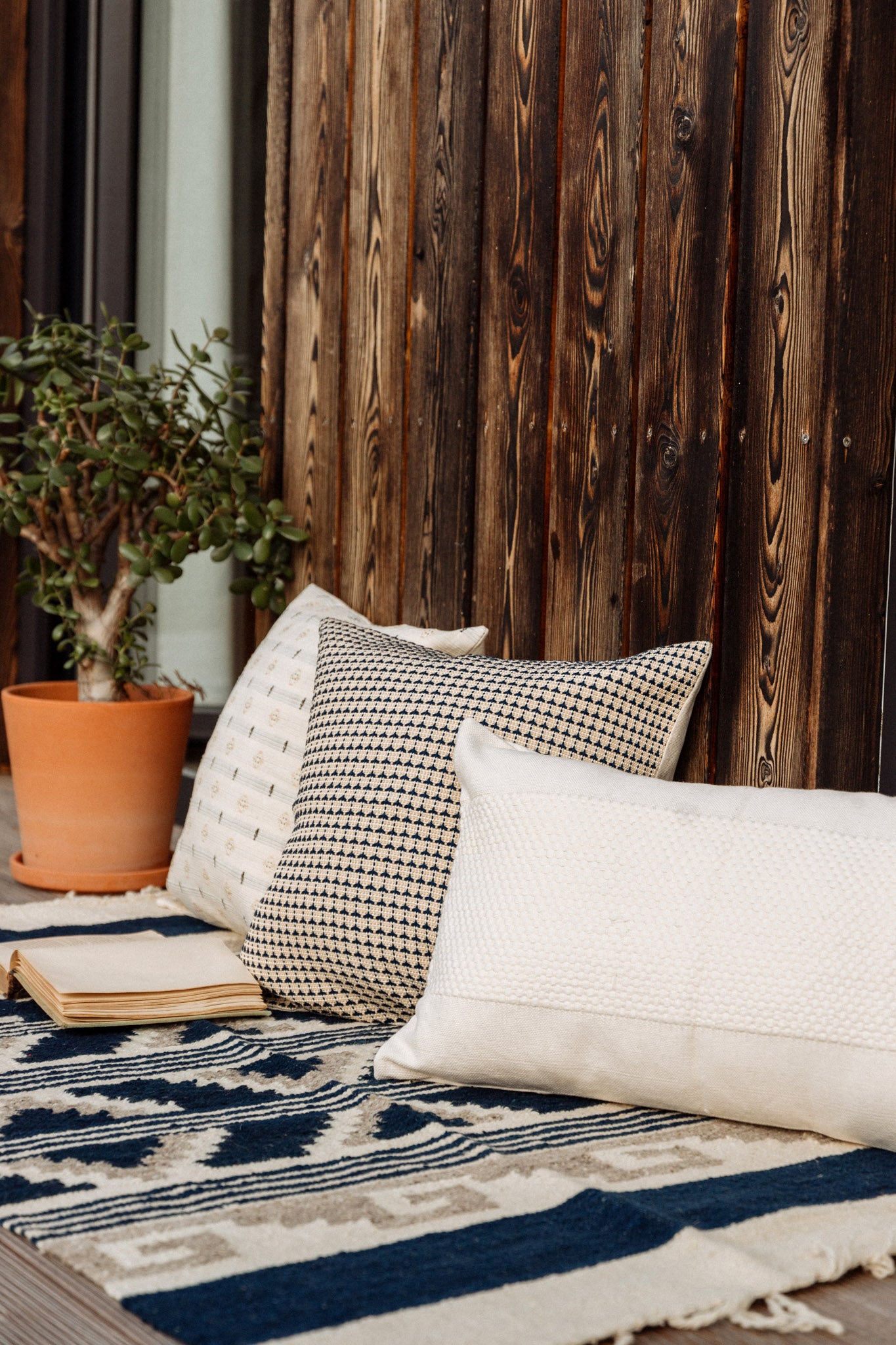 Elegantní povlak na obdélníkový polštář, s péčí a láskou ručně utkaný na tradičním tkalcovském stavu. Minimalistické provedení je ozvláštněno plastickou texturou na přední straně. Funguje samostatně jako statement piece, ale také v kombinaci s dekorativními polštářky v jiných barvách, velikostech a vzorech. Bez zipu, výplň vkládáme mezerou pod skladem na zadní straně